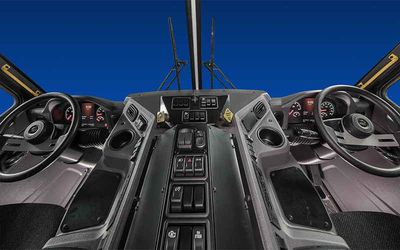 The Model 520 is designed for demanding vocation industries like refuse, concrete pumping, paint striping and more. Features an updated VMUX electrical architecture and pre-configured frame layouts for easier integration with a variety of bodies. The Model 520 has a sturdy galvanized steel cab frame and a 90-degree door opening for convenient cab access. It offers options for right-hand drive, left-hand drive, right-hand stand-up and left-hand sit/right-hand stand-up configurations.